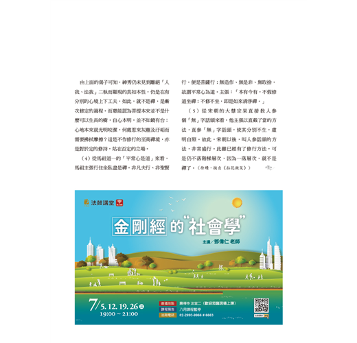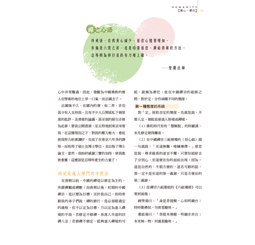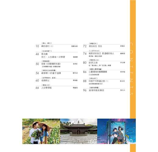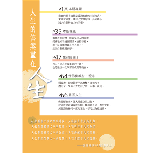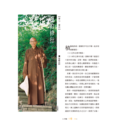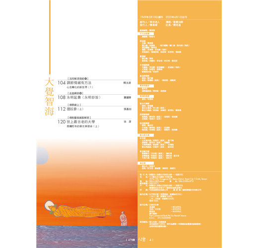 印順長老被譽為「玄奘以來第一人」,《印順導師年譜》於四月底發表,「焦點話題」侯坤宏與讀者分享編寫歷程與心得,有助於了解譜主的歷史定位,以及易被忽略的觀點。「世界佛教村.香港」老參師父為何說「不要太把自己當一回事」?聽有暋法師娓娓道來。新專欄「活用解深密經」,法源法師依《解深密經》教我們定位「情緒坐標」,了解「唯識無境」,學會禪觀情緒生滅,調伏情緒,就能創造快樂人生!