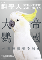 這一期《 科學人 》雜誌的封面故事是「 大鸚帝國 」,鸚鵡因為長相漂亮,叫聲宏亮,千百年來持續被人類做為寵物帶往世界各地,但這種生物又能活又能生,在許多地方已經落地生根,成為強勢的「 外來物種 」,在鄉村破壞農作物,在都市會開垃圾箱,甚至團滅其他原生鳥類。因此有些國家開始獵殺鸚鵡,但這是鸚鵡的責任嗎?鸚鵡說不定會兩翅一攤,說:「 這也不是我想要的生活啊!」