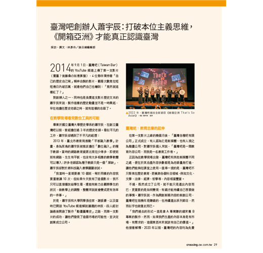 28 臺灣吧創辦人蕭宇辰:打破本位主義思維,《開箱亞洲》才能真正認識臺灣