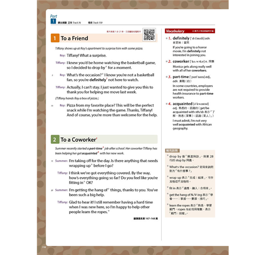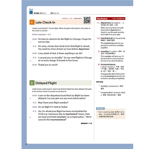 《即學即用 超實用英語會話X慣用語》精選三十六個實用的主題對話,結合真人拍攝的影片,教你如何在不同的生活情境中運用英文,每個單元還搭配精選的實用短句。主題包括旅遊時必備的〈搭機疑難雜症〉、〈入住飯店的常見問題〉、〈旅客服務中心英語〉,以及與購物相關的〈購物英語〉和〈家用電器疑難雜症〉等等。此外,還有留、遊學時可派上用場的〈學校住宿英語〉、〈一起迎接新學期!〉、〈一起做分組報告〉,以及〈面試英語〉、〈社交英語〉等,主題多元又實用!