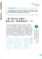 「國文漫遊」本期共收錄十篇文章,照例分成難、中、易三個層次,作為累積培養閱讀習慣品質之用。文章作者幾乎都是各大學中文系的教授,從文學到思想、從詩歌到小說、從古典到現代,主題包羅萬象,絕對能滿足同學對於國文相關領域的喜好與需求。每篇文章又都與國文課本選文或作者有關,仔細閱讀,相信可以增加同學在國文各個層面的理解與判斷能力。「國寫攻略」則是模擬學測國寫考試,提供知性題與情意題,以供同學練習。每題皆附有寫作指引與範例,提供同學下筆思考。此外,我們非常歡迎讀者在試寫本刊的模擬學測國寫題目後,投稿本刊,如確定刊登,將提供薄酬,以資感謝。而每篇通過刊登的文章,我們還會邀請專家批改並給予意見。其他如:作文教學、國文考試分析等等相關的文章,也在徵稿之列。
