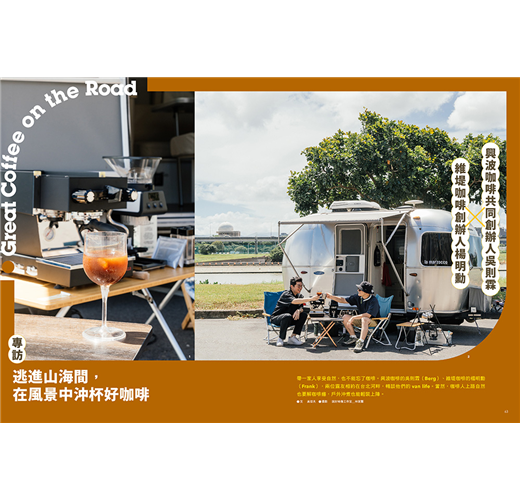 咖啡亦可是一場逃離喧囂、棲居自然的逃逸。台灣這座島嶼的城市總離大自然那麼近,開著露營車一小時就躲進山與海間,拿出簡單的器具沖上一杯,心情也開闊了起來。或在屏東恆春騎車吹風、衝浪後,躲進咖啡廳享受烘焙香氣。甚至可以遠赴瑞典峽灣,一邊欣賞壯闊景觀,一邊品嚐斯堪地那維亞正統淺焙咖啡。那麼,從一杯杯手沖與異國風情咖啡開始,這次獻上座標在全世界的多種旅行提案。跟隨我們的腳步,你將遇到台灣乃至世界各地的咖啡創意人與職人,展開一場芳香四溢的驚喜之旅!