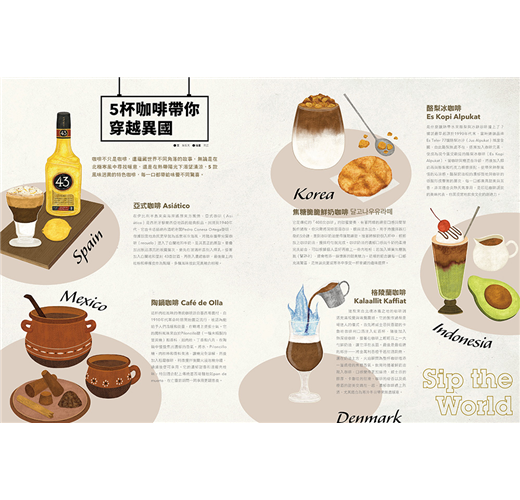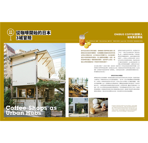 準備好展開一場從台灣開始,到世界的咖啡冒險?一個咖啡館是連接人與地方的橋樑,也是旅人觀察當地文化的窗口。從台北的老式與摩登咖啡廳、日本經典喫茶店與咖啡職人主掌的小眾店,到咖啡聖地之一的澳洲墨爾本,跟在地人一樣來個coffee break,甚至,在東南亞街邊小舖的冰甜咖啡,每一杯都訴說著當地故事。咖啡可以是探索新地域的起點,像是在基隆小巷中發現隱藏的咖啡館,或在日落台南時,一路酒精與咖啡路跑又醒又醉,感受這城市的夜間迷幻。遠到異國,在巴黎瑪黑區啜一口右岸新興豐饒的藝文氣息,或在早晨紐約下東城的一家咖啡店中,品嚐咖啡師特調選豆,街上外帶個貝果闖進這片紛雜的活力之中。