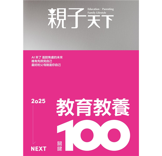 因為感受到這些挑戰,媒體中心團隊在這最後一期的雜誌中策劃了《二〇二五教育教養關鍵一〇〇》。這是一次全方位的趨勢梳理,從「新父母」「新世代」「新教育」「新挑戰」四大脈絡出發,記者和編輯團隊地毯式蒐集,精選出一百個未來的教育教養關鍵詞。我們希望這些精簡的介紹,能成為你們在成為父母這段旅程中的地圖,幫助你客觀看待趨勢帶來的轉變,並找到行動方向。