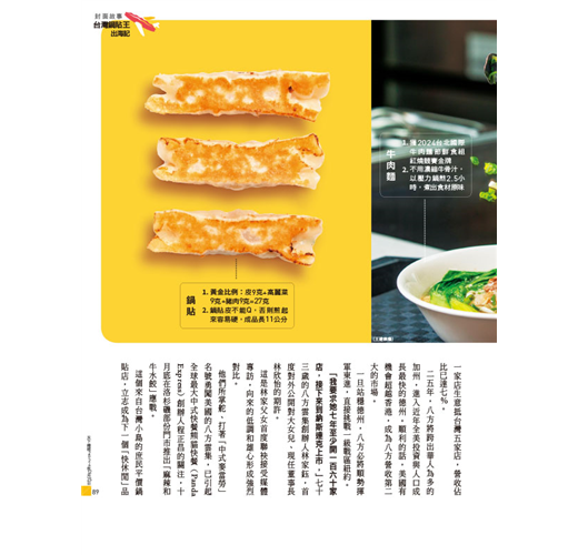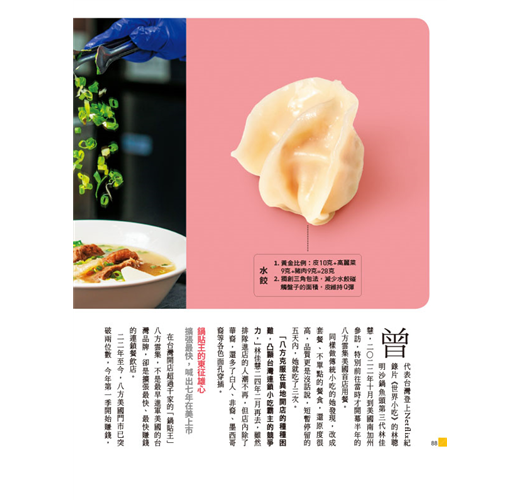 本期,曾寫過鼎泰豐專書的資深副總主筆王一芝,花了半年,約訪出海美國兩年就賺錢的台灣鍋貼王——八方雲集。「你知道,八方麵粉的比例調過幾次嗎?」她問我,原來水餃皮要Q,鍋貼皮不能Q,否則煎起來...