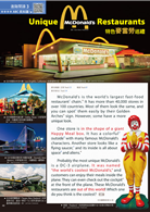麥當勞是家喻戶曉的速食連鎖品牌,在各國皆有多間分店,其金拱門標誌為麥當勞深植人心的特徵之一。不過,麥當勞餐廳的外觀並非千篇一律,在某些地區,麥當勞會根據當地的自然環境或人文特色在設計上融入巧思。像是在美國新墨西哥州,有間以飛碟為外型設計的麥當勞;在紐西蘭陶波,則有一間麥當勞是由貨真價實的飛機改建而成。本文將帶你探索更多獨特又令人驚奇的麥當勞餐廳!