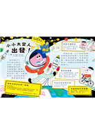 你準備好飛上太空了嗎?這是一場屬於孩子的太空冒險旅程!從中獎的那一刻開始,小小太空人的任務就啟動了。一連串的太空人特訓:每天運動兩小時來強健體魄,學習外語以便和來自世界各地的太空人溝通,還要穿上超重的太空衣、躺進離心機、到大泳池體驗微重力的感覺,學會如何在太空平衡與控制身體……