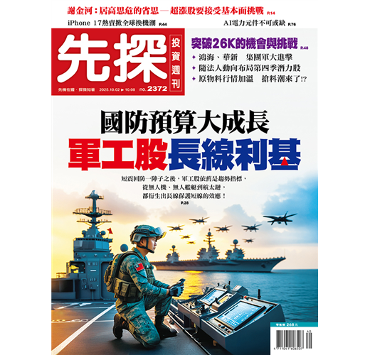 國防預算大成長 軍工股長線利基軍工類股短線乖離過大,九月明顯回檔,國防產業是未來重要的信賴產業之一,無人機、無人船艦及航太供應鏈等股價冷卻後可以留意誰有籌碼接盤。本周三出刊的《先探投資週刊》2372期就以台北軍工展帶來的刺激效應為主軸,看看台股二萬六千點的當下,除了AI這個資金主賽道之外,軍工股能帶給股市投資人什麼新鮮感?