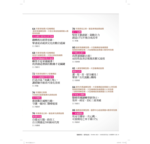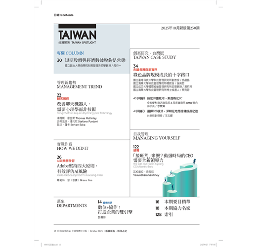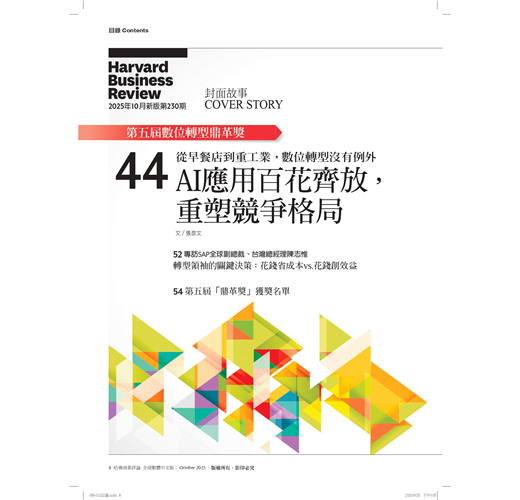 在各界引頸期盼下,「數位轉型鼎革獎」於本期揭曉了。這個獎項由本刊與企業管理軟體領導廠商SAP,於2021年起共同舉辦。今年,在眾多企業競逐、專家評審團嚴格評核下,選出了數位轉型的典範。我們欣見許多企業更加精進地運用數位能力,提升營運效率與彈性,增加供應鏈韌性及智慧管理能力。此外,今年增加「年度數位長獎」,以及「AI應用特別獎」,希望發掘企業或組織運用AI所帶來的創新,讓這個平台成為大家共同學習的場域。