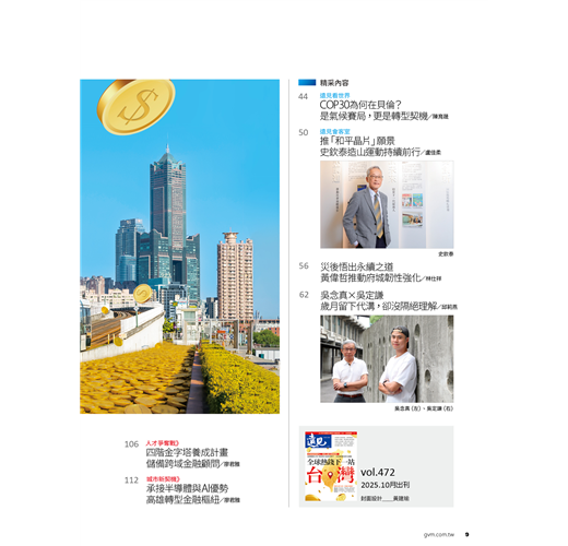如今,產官學研齊動,法規鬆綁數量已超標、首批業者進駐。《遠見》專訪金管會主委彭金隆、高雄市經發局長廖泰翔,並走訪多家金融機構與專家,探討這場30年來最受矚目的金融改革,能否讓台灣從「資金外流國」翻轉為亞洲新興的「資金新港灣」?
