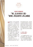 經營沒有標準答案,就是在其中體會和揣摩,不變的是,每一位MVP,每一位最有價值的經理人和工作者,都不只是埋頭創造價值,也持續抬頭看見風勢,在變動裡,總有不變的核心法則。