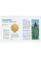 本期封面延續以往諾貝爾專輯的版式設計,將四個主題類別依序安排在四個區塊,區塊內以標誌圖樣表示各領域的研究亮點。主標題放置在視覺中心,並搭配諾貝爾獎牌的經典頭像,背景圓底則輔以傳達全球各地得獎者的概念。