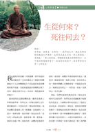 此外,本期推出新專欄「禪心相對論」,精選聖嚴法師的禪修開示,帶領我們在有與無、善與惡、生與死等相對概念之中,學習以中道智慧安住身心;「佛法療育之道」則由具有公共衛生專業背景的常悅法師,帶領讀者重新思考現代醫療迷思,找回身心健康的主控權。