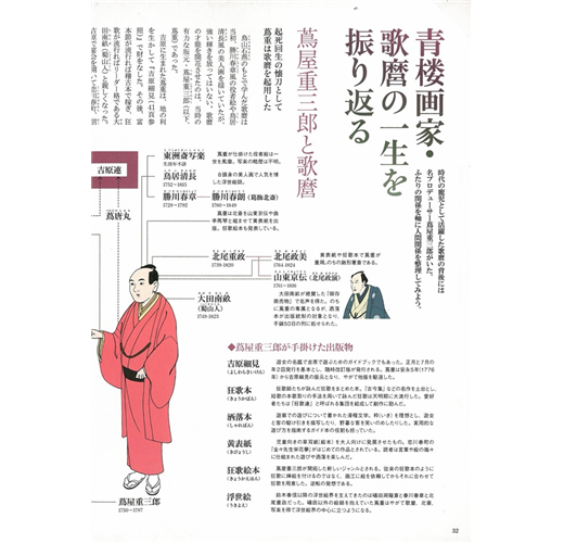 「美豔」重視纖細線條的美人大首繪、「青樓」將吉原的世界忠實寫下的美人畫、「息吹」藉由大膽的構圖將命借宿於此的博物圖譜;要想了解日本浮世繪最著名的大師歌磨,首先就得從這三大關鍵開始著手。單元除上述三大特集介紹,精采內容另收錄「青樓畫家-回顧歌磨的一生」、「歌磨所窺見-江戶吉原的世界」、「從歌磨的畫了解江戶的文化-大江戶時尚」、「歌磨的春畫」、「浮世繪的歷史與流派」;隨誌附贈「婦人相學十體,吹線軸的姑娘」/「當時三美人」雙面摺頁海報&歌川廣重-「東海道五拾三次」蒲原~藤枝,收藏卡,超值組合等你來確認收藏。