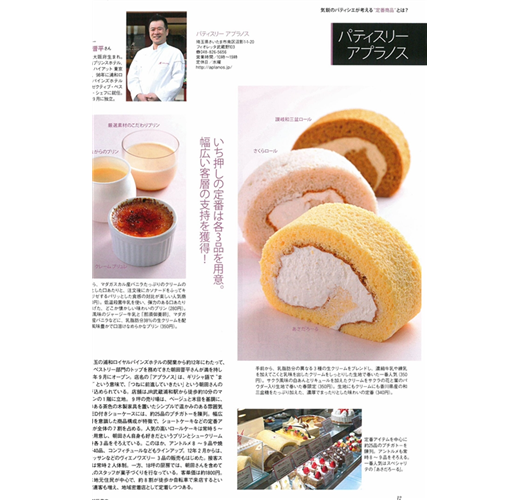 另一方面,例如草莓鮮奶油蛋糕之類的基本品項,也正在隨著顧客偏好的變化,而發展出各種嶄新的設計、以及風味上面的進化。在這一冊「日本糕點的定番&新定番」大特集裡,將透過十餘家人氣PATISSERIE(西式糕餅店)所考量提供的定番商品、七位注目點心師傅所推出的創意糕點設計,以及神戶老舖ANTENOR定番商品的今昔解析、PATISSERIE KIHACHI的瑞士捲定番&新樣式、東西百貨公司地下街的2012糕點流行趨勢等,來徹底檢視日本現在的定番糕點。