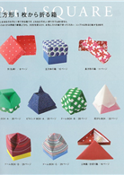 這一冊所收錄的作品,主要分為「以一張正方形紙摺成的盒子」、「從正方形摺成的組合盒」、「長方形紙摺成的組合盒」三大單元來作介紹。一張基本的正方形紙,就可以摺出10種各種形狀的基本款紙盒;而從正方形所組合出來的紙盒,又可再變化出13種的基本花樣;而若是使用長方形的紙來摺,則可摺出7種基本樣式。而在基本款之外,還可以再改變材質、顏色、內部設計、上蓋等,來摺出更多的樣式。