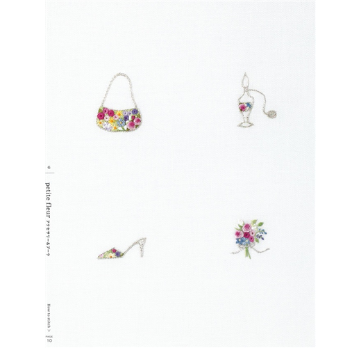 收錄的圖案依7個主題分類,包括填滿洋裝…等圖案的「小花朵」、自由繡花的「印花布」、以玫瑰花舖排而成的「婚禮小物」圖案、集結各種花草圖案的「花園」、包括艾菲爾鐵塔圖案的「討人喜愛的物品」、由五顏六色的小花圖案構成英文字母的「花朵字母」以及日本傳統器物圖案的「傳統和風」。除了刊載實物大圖案,最後也有解說使用的各種刺繡針法。