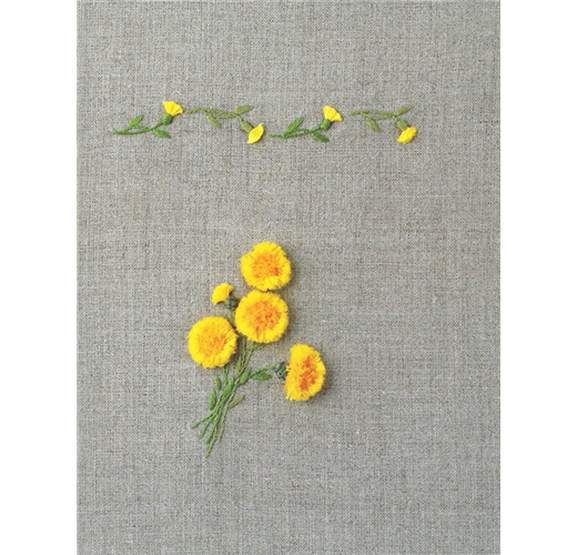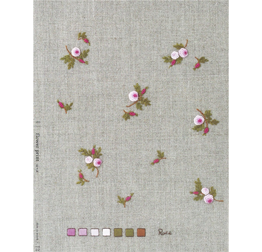 花朵刺繡散佈於繡布上就如同印花布,包括季節花卉、雛菊、玫瑰、含羞草…等。