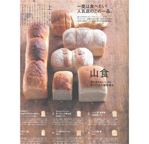 接下來,則是以一定要吃上一次的人氣麵包店超夯麵包、知名麵包職人的造訪介紹、本誌與日本麵包的15年歷史、現正熱門的人氣店的3大特色關鍵字、讓麵包生活更美好的3項提案、結合旅遊和品嚐美味麵包旅遊與麵包的提案、一日三餐的麵包主食菜單、日本各地魅力麵包店清單等主題,來豐富麵包單元的內容。