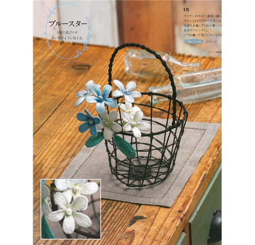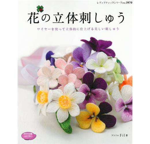 不同於平面的刺繡,本誌所要教大家的是使用鐵絲的立體花朵刺繡。原本只是平面的花朵刺繡,只要剪下來並且用鐵絲固定,美麗的立體花朵刺繡就完成了。而完成的立體花朵刺繡,除了可以像封面上一樣做成美麗的花束之外,還可以做成飾品、做成花圈,還可以裝飾相框、燭台等各種物品。喜歡刺繡的你,不妨也來挑戰看看美麗的立體花朵刺繡。