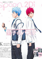 雖然漫畫原作本篇的連載已經正式落幕,但動畫作品仍在如火如荼地熱力放送中的《影子籃球員》,其中描繪夢幻第六人.黑子哲也與『奇蹟的世代』往日歲月的帝光篇尤其受到廣大粉絲的鍾愛,本次的SPOON 2Di訪問了飾演讓黑子愛上籃球的關鍵人物.荻原的林勇,來分享他對於這段劇情的感想與看法。而作為雙封面的另一主題則是確定第二期動畫即將於2015年秋季放送的人氣異色作品《K》,為了迎接王者們的強力歸還,本期特別製作了《K》系列的特集,除了新作情報和訪談外,還收錄有劇場版跟舞台劇的相關內容喔!此外還有《歌之王子殿下》第三季、《御神樂學園組曲》、《刀劍亂舞》等眾多強檔作品的多方資訊,並為您送上《無頭騎士DuRaRaRa!!X2承》的精美L型資料夾!