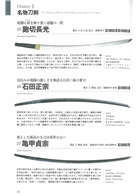 又稱為武士刀的日本刀,可依形狀分為太刀、打刀、脇差、短刀等種類,原本於平安後期所使用的直刀,經過若干年代的演變已經變成彎刀的模樣,而直刀就如同歷史大劇中所見的一般多用於砍劈,至於彎刀則是比較適合割劃動作時使用,從平安後期到鎌倉時代,日本刀因為戰備需求而被大量製作出來,也因此出現許多銘刀作品。在各地名匠輩出的狀態下,出現了大和國、備前國、山城國、相模國、美濃國等5大日本刀製作中心。本冊將對在全世界獲有盛名的270款日本名刀進行詳細的解說,有跨時代備受喜愛的御物 鶴丸、平野藤四郎和天下五劍、225名刀列傳等,進行究極的「技」與「美學」的探討,此外,還有哲學家 中澤新一和武術研究者甲野善紀的特別專訪等精彩內容。