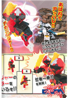 超人氣特攝影集「手裏劍戰隊忍忍者」,將用LaQ立體拼圖塊來組裝,重現登場人物們的獨特魅力,此次不但有示範基本組裝方法與技巧,還特將5款御伴忍和紅色御伴忍手裏劍組合成一款超大型的巨大機器人「手裏劍合體機神」,手裏劍神的武器為自龍丸分離的尾巴「飛龍劍」與龍丸雙翼合併的「飛龍盾」、必殺技之「手裏劍神.暴烈斯」。在日本戰國時代被封印之最兇猛的武將-牙鬼幻月復活了!伊賀崎忍者的後代伊賀崎天晴、風花兄妹等5人大集結,要來對抗牙鬼幻月、蛾眉雷藏、十六夜九衙門等牙鬼軍團,LaQ的組裝作品依難易度分基礎(裝備、武器等)、初級(手裏劍戰隊忍者隊員、巨大犬等)、高級(手裏劍合體機神等)來做逐一個體的組裝講解,是喜愛手裏劍戰隊忍忍者不可錯過的。