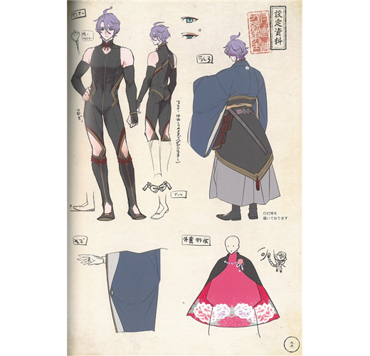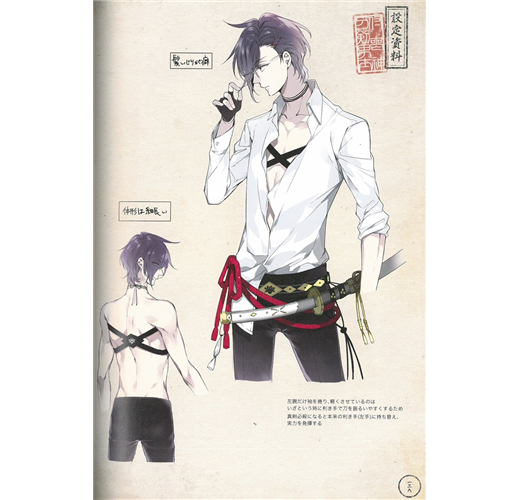 而今年六月,nitro+宣佈將在八月推出這本讓所有身為「審神者」都為之振奮的消息,即將在夏天時推出A4大小,頁數高達204頁的『刀劍亂舞公式設定畫集:刀劍亂舞絢爛圖錄』。本誌預定收錄包括了2015年5月初,來派的明石國行與加入一名刀劍男士(尚未公佈),總共46名刀劍男士,以及在遊戲中登場的刀劍男士們的戰鬥立繪及內番立繪,也一併收錄了要在一定條件下才看的到的稀有的真劍必殺立繪。還有還有!公式繪師們的詳細設定,包括了所有喜歡伊達政宗愛刀之一的燭台切光忠的背後設定圖,以及衣物的分解圖,初次公開的圖片都在本誌。