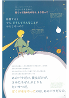 隨刊贈送質感很棒的小王子提袋,正面是小王子藉著侯鳥從自己的星球出發去旅行的插圖,上面的法文是則小王子的經典語錄之一的「最重要的東西是眼睛看不見的」。背面則是小王子裡的玫瑰的刺繡。就連提袋內側也有印上小王子的簡潔插圖,非常精緻。(尺寸:高220×寬300×底部深100mm)除此之外,還有贈送12張正反兩面皆有小王子插圖的明信片組。