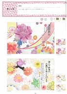 在WINDOWS和MAC雙方都可以對應的DVD-ROM裡,有日本傳統美麗花紋圖樣的魅力和風世界圖檔,它們可以任意添加在賀年卡片上,而且不需要複雜的列印軟體,只需使用手邊所持有的「WORD」、「筆王」等,就可以設計、列印出專屬品味的賀年卡作品了。除各種具有和風風格的的創意塗繪賀年卡作品之外,本次還有藝術剪紙作品和和風紅包袋的手作項目,這樣就能輕鬆過個不一樣的年了。此外,還有結婚、生產、搬家等主題的寫真賀年卡、一般賀年卡、聖誕賀卡、寒冷季節問候、暑中問候等可以放入拍攝數位寫真的賀卡製作方法解說,讓寫真賀卡不再枯燥無味又多了一份藝術創意的造型變化,賀年卡的製作首先可從書內揭載的素材開始做挑選並記住位置,接著再從DVD-ROM內找出素材圖案,啟動印刷圖案賀卡的軟體,最後再置入圖案和文字檔、近型印刷即可輕鬆完成。