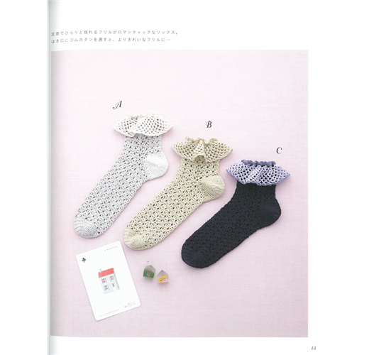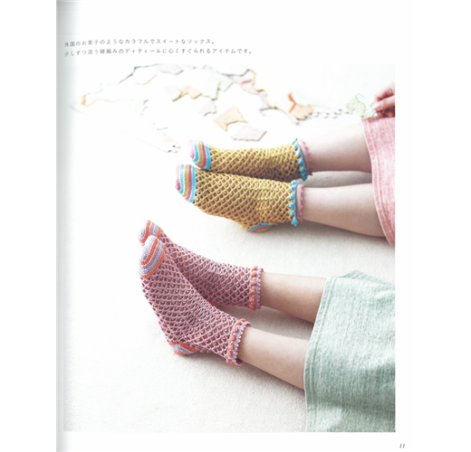 本誌將介紹多達13款的襪子,無論是在居家穿著,或是外出的搭配,都有可愛的襪子可以選擇。無論是一般的中筒襪、鮮艷的花邊襪、少女氣息的蕾絲襪、綁帶短襪、方形編織襪、有蝴蝶結等吊飾的襪子,或是適合居家的舒適襪子,以及長統襪…等,每一款襪子都有三款顏色。透過詳細的圖文解說,就連初學者也相當適合參考製作。