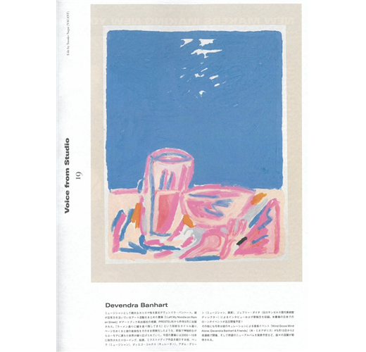 本期的「STUDIO VOICE」主題是「時尚」,開頭將送上巨匠攝影家RICHARD.AVEDON的孫子MICHAEL AVEDON的攝影作品,另外,法國寫真影像雜誌「MASSES」的主題作品也將收錄其中。音樂作品汲取了60年代迷幻搖滾,曲風自由不受拘束,展現豐富音樂性的音樂藝術家Devendra Banhart通過其作品的音樂性所視覺化的書籍、繪畫將於近日開催的情報公開。