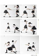 功夫少女動作解析特寫無論是漫畫、動畫還是遊戲,功夫美少女的打鬥畫面永遠都不嫌多。不過你當然希望創造出俐落帥氣的武林高手,而不是有氣無力的花拳繡腿。在此就送上這本「瞬攝武打動態姿勢寫真圖解 VOL.1:女子高生武打編」,協助各位破解少女打鬥時的動作祕密。設計動作包括各式各樣的踢技、跳躍和武器的使用,也有使用拳頭的畫面,所有示範都提供水手服和比基尼兩種版本,可以同時研究衣服和頭髮的律動感,以及肢體的平衡感。大量的分解停格和多變角度也非常實用,想要讓筆下人物更厲害的各位,現在就來參考吧。