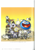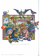厚厚一本,滿滿的插畫讓人可以好好回顧一下永恆不變的經典,也讓大家感受到活力十足的RPG式氛圍。高精細的五色印刷可以向大家傳達原畫的魅力。夾頁附錄贈送的海報是鳥山明老師所繪製的《勇者鬥惡龍》系列十一主角齊聚一堂的插畫,背面則是《勇者鬥惡龍》各個系列的年表,讓你可以將三十年以來的經典一覽無遺。