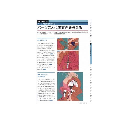 鑽研電繪領域已達 15 年的知名繪師:碧風羽,則要在這本【碧風羽繪師插畫描繪技法完全講座】向有志踏入電繪領域、或進一步精進畫技的各位,展示頂尖畫師在華麗插畫背後的創作軌跡。MOOK 中分成兩大部,分別解說封面插畫「人魚公主」和另一幅「雪之女王」的繪製過程,從主題發想、草稿設定、線稿、構圖、上色、背景繪製、光影、金屬質感、配件、空間氣氛營造到完稿修飾,每一步都以豐富圖解細膩解說;最珍貴的是,在技法解說外更加註了繪師碧風羽的思考和闡述,讓你從裡到外,徹底掌握一流插畫作品的創作關鍵。