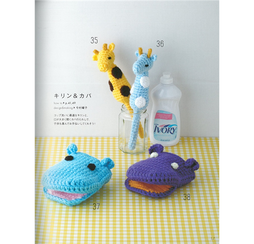 可愛的動物造型編織物,只要變更一下線材的種類,就能夠擁有既環保又兼具視覺效果的造型抹布了。使用100%壓克力線材編織成的造型物,即使無使用清潔劑也能將將碗盤、鍋子等器具清潔乾淨,不但對地球有益、對玉手的保護也有明顯的效果,因此,為了讓更多人能夠了解、使用造型環保抹布的好處,特別收集100款造型動物造型作品。