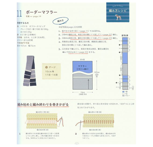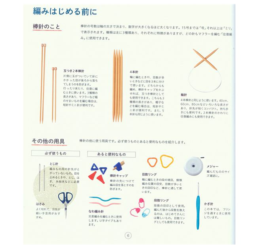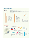 接著要為大家介紹開始編織前要懂的大小事,像是棒針的區分以及其他用具,以及編織面等等的相關知識。裡面循序漸進,透過各種不同的款式,介紹不同的棒針編織技法。除了各種讓人喜愛的好看圍巾之外,也有介紹毛線帽、蝴蝶結頭巾等等小物的範例。而且裏頭介紹的範例也都有附上清楚明白且易懂的圖解教學。