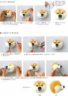 首先製作毛線球來作為本體,接著以刺針來強化吻部造型,再修剪成想要的臉型。然後安裝上眼睛,再以羊毛氈來製作口鼻,並以毛線和羊毛來做成耳朵,結合上臉型本體便大功告成。完成之後的作品,可以進一步加工成鑰匙圈、髮圈、胸章等,成為可愛的隨身裝飾。