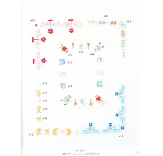 將手邊現有、看來不起眼的素色上衣,針織罩衫、幼兒童裝、室內鞋、襪子…等;通通加上可愛刺繡圖案,只需這個舉動,就能讓它們再一次被列為新寵,每天帶在身邊也不嫌膩。最新刺繡圖案精選780,以「英文字母」、「線條」、「邊角」為主題,結合美麗花朵、可愛昆蟲和動物加以裝飾,讓原本制式化的造形有了不一樣的詮釋。蝴蝶結、星星、葉子、雪結晶、迷你玫瑰、刺蝟、栗鼠、小蜜蜂、蔬果、廚房雜貨…;利用生活中常見的元素為題材,以歐洲刺繡技法為中心展開,可直接於洋裝、布雜貨進行刺繡,附上詳細刺繡教學圖解,並提示實物尺寸圖案集,現在就起身動手試試看吧。