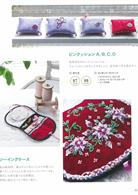 尤其是珠子的漸層式變化、聚集式的變化效果,都能讓作品產生不同程度的華麗感,即使是相同的珠子使用,也能在繡線的色彩變化下,有纖細且微妙的色彩變化樂趣,再加上這些串珠刺繡技巧能夠靈活應用於服飾、提袋等作品上,所以能夠在無形中增加不少生活的樂趣,此外,串珠刺繡也能應用於十字繡的布料上,等寬的間隔讓刺繡時可以減少不少的時間,也是讓作品快速完成的捷徑之一。