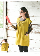 本誌特地介紹一些可以當作外出服來穿著的圍裙作品,它們的可愛、時尚造型模樣設計讓人想把它們當作罩衫洋裝來穿著,可為居家生活帶來更多的情趣與樂趣。六、七分袖的居家圍裙是保護手臂不被噴出油泡燙傷的最佳廚房便利與實用的小物,若能選擇喜愛的花色布料來縫製,就更加叫人欣喜若狂,而使用同布料縫製而成的髮飾品、手套、隔熱墊等小物,更有錦上添花的效益。