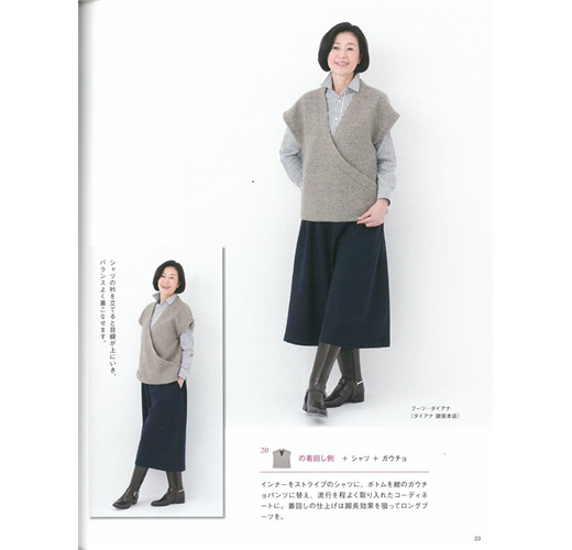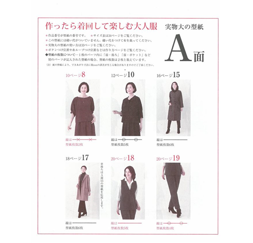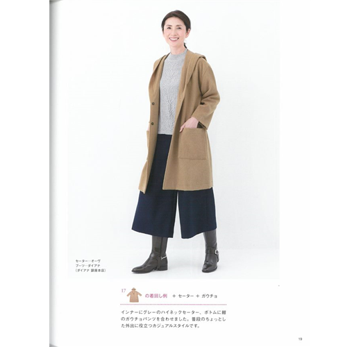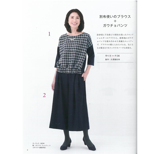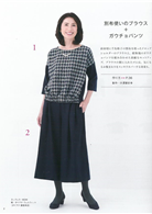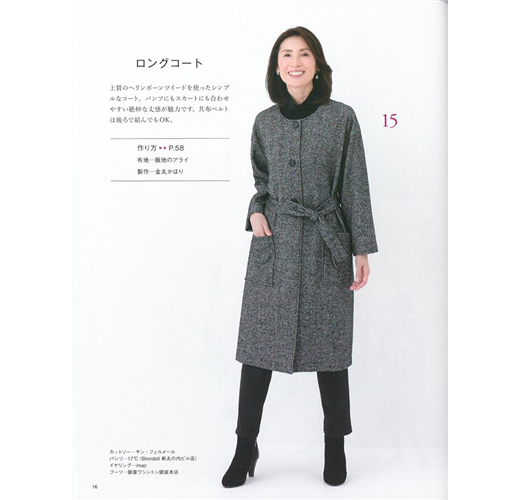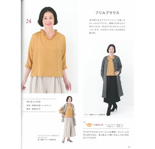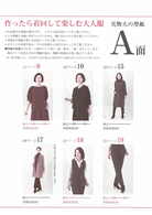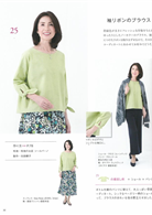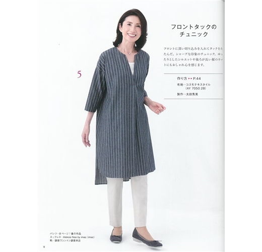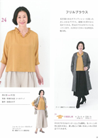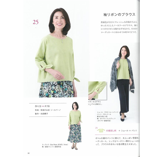 下擺加裝鬆緊帶有效修飾小腹的千鳥格上衣&深藍色寬褲裙、直條紋布料看來更修長的七分袖打摺上衣、歐美風格帥氣時髦的腰部綁帶長大衣、和服著感胸前交叉設計短袖背心、時尚奢華的光澤感荷葉領上衣、成熟可愛的蝴蝶結裝飾上衣;全冊提案27件日常外出好搭配的款式,附上S、M、L尺寸型紙,輕鬆添購換季新衣。