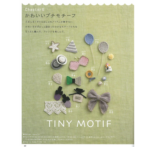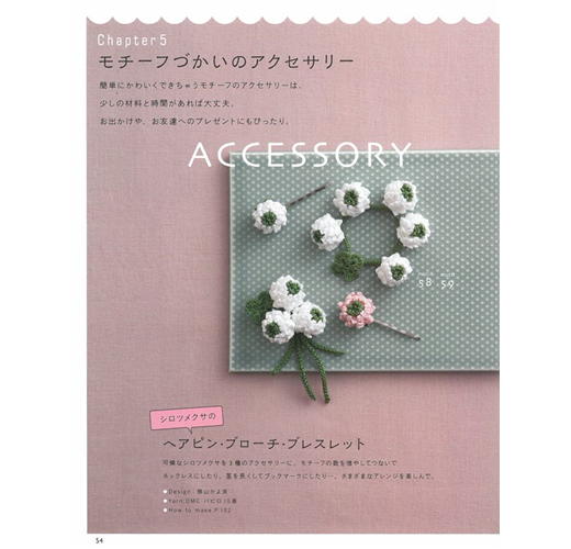 本誌將以「四角形花樣」「花卉主題」「三角形、六角形花樣」「圓形花樣」「應用主題花樣編織的飾品」「小巧可愛主題大集合」等主題,分為6大章來介紹相關的花樣、織法和作品。總計收錄多達98種花樣&79件的作品。卷末並附上8頁圖解的「鉤針編織基礎」。