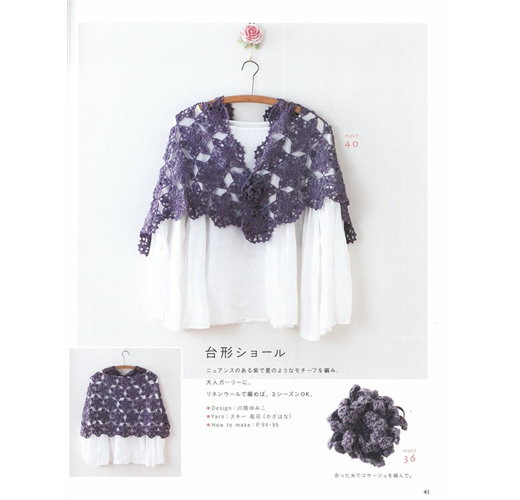 小小一片馬上就可織好,花樣可愛、種類變化又多,可以說是花樣編織最吸引人的地方,而且非常適合初學鉤編織的朋友作為入門。單獨一片,可以作為杯墊,二片可以做成針插,拼接成一大片的作品應用更是沒有界限,不管是餐墊、杯墊、毯子、熱水袋套子等的居家雜貨,圍巾、披肩、裝飾領、洋裝、帽子等的服裝配件,各樣各樣的大小包包…都能隨創意而化為實際的作品。此外,花樣編織還能應用在立體造型的飾品、可愛主題小物等。