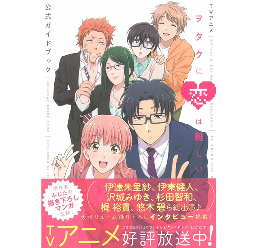 聲優陣容沿用廣播劇,除了伊達朱里紗、伊東健人、澤城美雪、杉田智和、梶裕貴外,新角色櫻城光由悠木碧配音,如此豪華的聲優群讓畫面表現上更加增添風采。而將動畫魅力完整呈現的公式導讀書也正如火如荼製作中,除了角色設定和工作人員、聲優訪談外,原作相關的各式情報也是豐富滿載,另外Fujita老師特別新繪的漫畫也收錄其中,喜愛『阿宅的戀愛太難』的粉絲請務必入手一本。