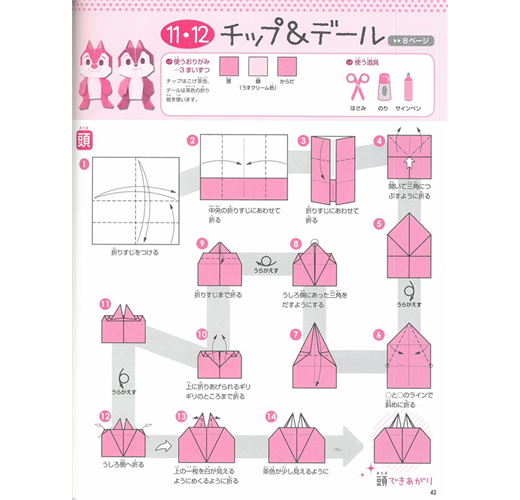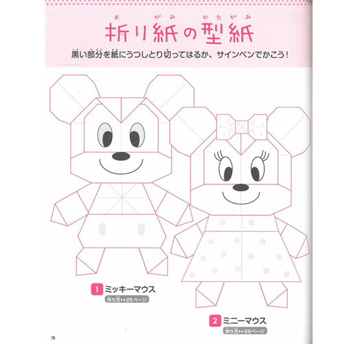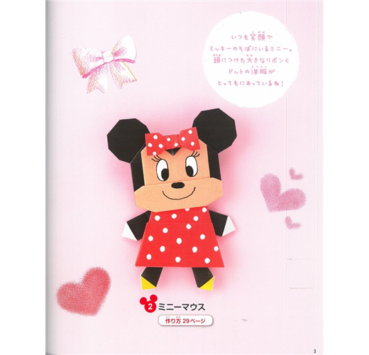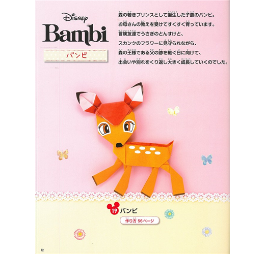 全冊收錄多部迪士尼人物,包括米奇&米妮、小熊維尼&夥伴們、高飛&布魯托、唐老鴨&黛絲、小鹿斑比、星際寶貝的史迪奇&女朋友…等,利用各種顏色色紙加上摺紙技巧,沒有太多複雜的程序,只要多加練習就算是初學者也能安心跟著書上的指示一起享受摺紙的樂趣。