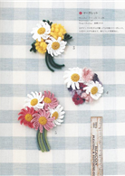 不同於平面編織花卉的立體花卉,再加上葉片與蝴蝶結的點綴與裝飾之後,做成別針就更傳神了。