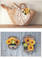 花瓣數量有些多的向日葵編織花卉,有著夏日艷陽的氛圍,做成胸花作品後,可配帶在服裝上或是籐編籃上做裝飾。
