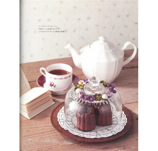 花卉造型的花環形狀編織作品,可做裝飾的地方有很多,例如:點心蓋、畫框等處。