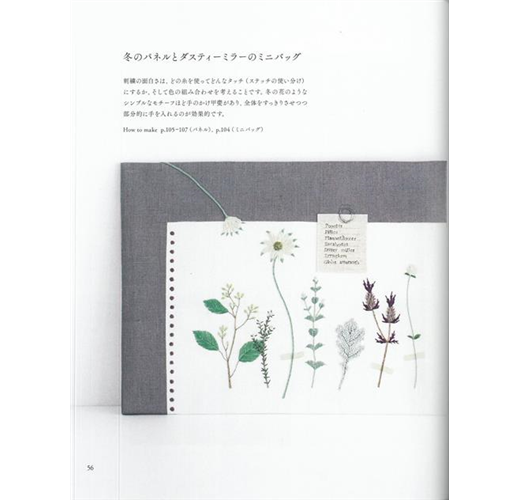 將冬天花葉繡成一幅美麗圖案,構圖雖然簡單,但看起來相當清爽,有一種植物標本的獨特趣味。